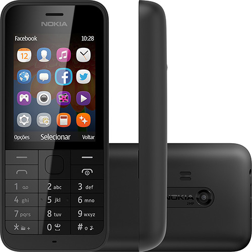 Celular Dual Chip Nokia Asha 220 Desbloqueado TIM Preto 2MP 2G Cartão de Memória até 32GB